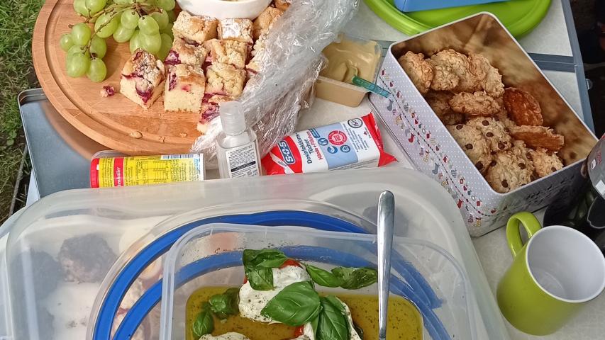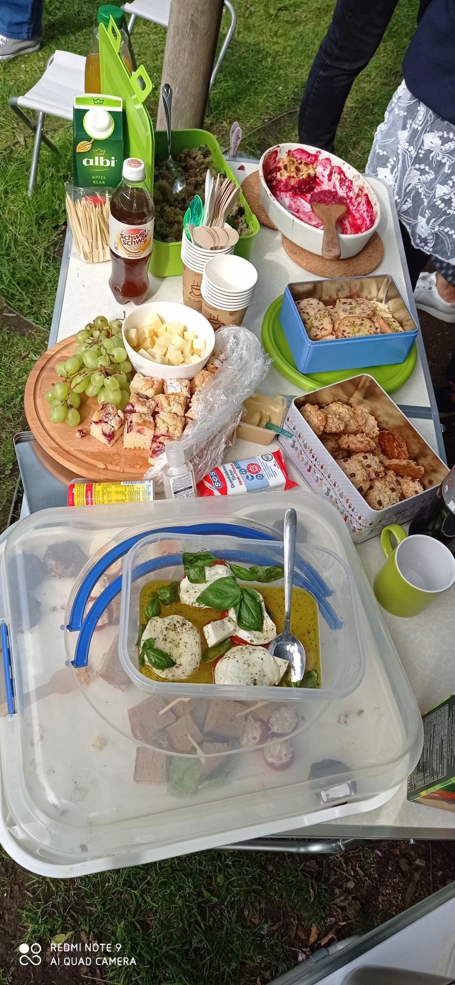 Als sich unser Fahrgast in den Rollstuhl umgesetzt hatte, ging es in Begleitung der Söhne die etwa 50 Meter in den wirklich schön angelegten Stadtpark hinein, wo der Rest der Familie von Herrn H. schon auf uns wartete. Auf dem Weg zum Rosarium winkte er schon freudig seiner Familie zu, die Überraschung war eindeutig gelungen. Wir wurden alle sehr herzlich empfangen und das Picknick war vorbereitet. Es gab alles, was das Herz begehrt. Jedes der 20 anwesenden Familienmitglieder hatte etwas mitgebracht. Herr H. freute sich über einen Kaffee mit selbstgebackenem Käsekuchen im Kreise seiner Liebsten, woraufhin es anschließend mit selbstgemachtem Chili con Carne weiterging. Es gab reichlich zu essen, so dass am Ende noch vieles übriggeblieben ist und die ein oder andere Kleinigkeit für ins Hospiz mitgenommen wurde.