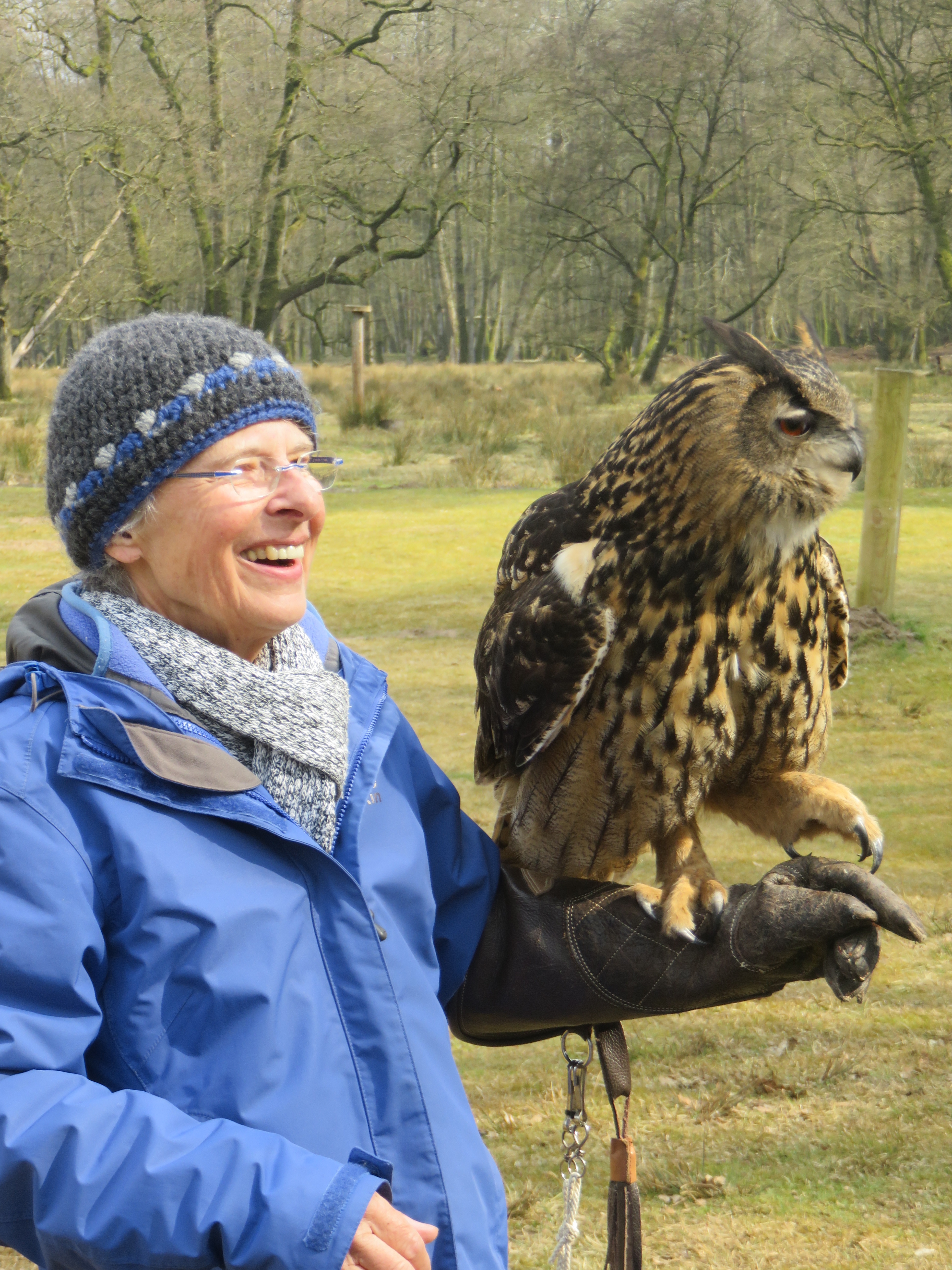 Gabriele, die langjährige Freundin, hatte für Hilde extra ein weiches Schaffell für den Rollstuhl, um ihr den Tag noch angenehmer zu gestalten. Als sie den Wildpark erreichten, war Hilde in ihrem Element. Schon auf dem Weg zur Falknerei begann sie, fröhlich erste Vogelmelodien zu pfeifen, die wir Wunscherfüller:innen erraten durften.